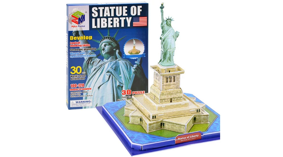 Ez a 30 elemből álló, térbeli kirakós játék, amely a híres amerikai Szabadság-szobrot ábrázolja, minden apró kirakós és 3D-s modellezés szerelmesét el fogja kápráztatni. Az egyes kirakós darabok speciális lapokra vannak helyezve. Elhelyezésükhöz nincs szükség éles tárgyakra vagy ragasztóra. A