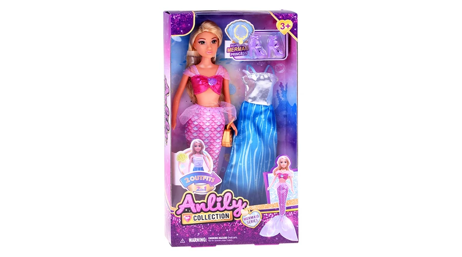 Fedezd fel ezt a varázslatos 2 az 1-ben babát, amely elegáns hercegnőből bájos sellővé alakulhat! Tökéletes játék minden kis mese- és fantasyrajongó számára. Cserélhető ruhákkal és csillogó kiegészítőkkel gyermeked saját történeteket alkothat – hol egy királyi bálon, hol egy víz alatti királyságban.
