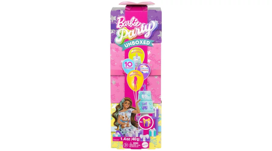 Ünnepelj stílusosan a Barbie® Party Unboxed: Surprise Celebration – Evening Stars játékkészlettel. Tökéletes a meglepetéseket, születésnapi bulikat és kreatív szórakozást kedvelő gyerekeknek, ez a készlet 10 izgalmas meglepetést tartalmaz egy ajándék témájú dobozban – köztük egy divatos Barbie® babát, egy aranyos kiskutya vendéget és minden kiegészítőt, ami egy tökéletes ál-születésnapi buli megrendezéséhez szükséges.