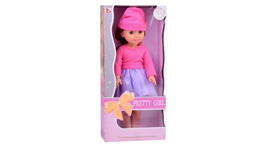 Egy bájos baba minden lány számára rengeteg pozitív szórakozást nyújt. A 36 cm magas babának hosszú, barna, hullámos haja van. Rózsaszín sapka van a fején.