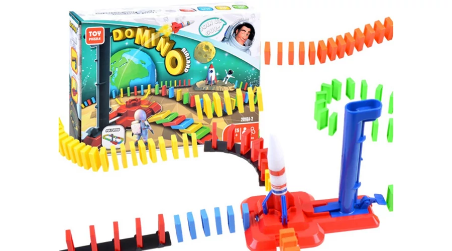 A dominó színes műanyag csempékből álló készlet, melyeket könnyű lerakni.