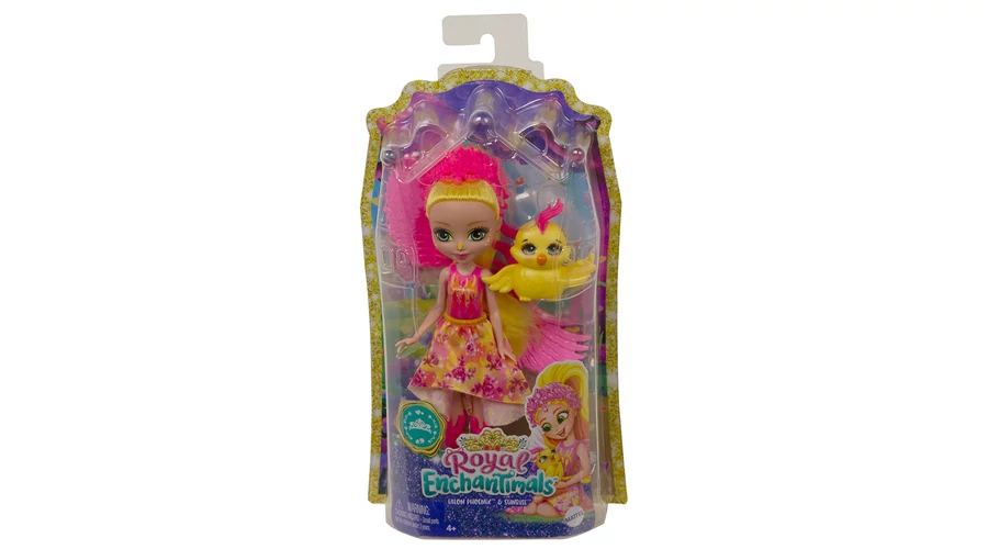 Ismerkedj meg az Enchantimals™-szal, egy csapat édes lányval, akiket különleges kötelék fűz kedvenc állat barátaikhoz. A Royal Enchantimals kollekcióból a Falon Phoenix baba (15,2 cm) és kedvence, Sunrise™ jár hozzá, aki mindig vele van és hasonlít is rá! A gyerekek imádni fogják a Falon Phoenix babát hosszú hajával és elbűvölő szárnyaival. A csomag tartalmaz koronát, levehető szoknyát és cipőket. Napkelte™-tel közös vonásaik vannak, amelyek inspirálják a képzeletet! A gyerekek számos történetet találhatnak ki a két barát közötti különleges kapcsolat révén. A babák nem állnak meg önállóan.