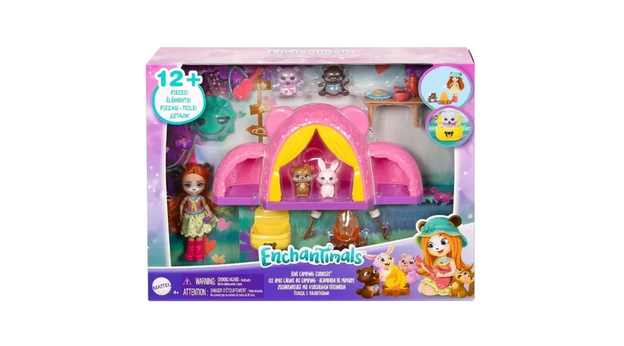 A sátorral, tábortűzzel és egyéb kiegészítőkkel együtt ez az Enchantimals babakészlet mindent tartalmaz, amire szükséged van egy kényelmes kempingezéshez egy baba és imádnivaló állatbarátai számára.