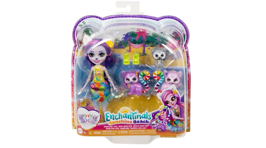 Az Enchantimals Lorinda Lemur baba aranyos makikkal tökéletes készlet minden olyan kis aranyos babák és háziállataik rajongója számára. A 15 centiméteres babának hosszú, lila haja rózsaszín csíkkal, fülei vannak a fején, eredeti felsője (bele van igazítva), mintás szoknyája, zöld cipője a lábán és természetesen hosszú farka van. A babának mozgatható végtagjai vannak. Három imádnivaló maki kíséri. Lorinda egy varázslatos földön él, ahol az állatokkal való erős kötelék nem furcsa, és a barátairól is a tőle telhető legjobban gondoskodik.