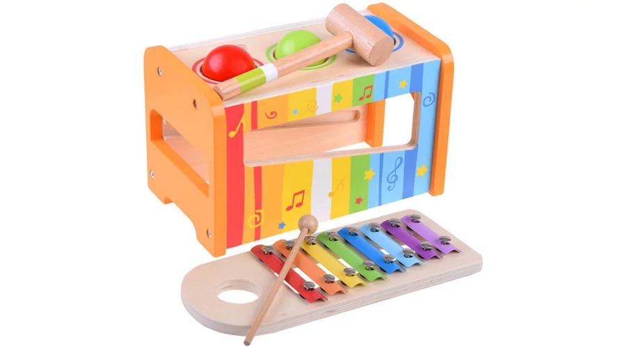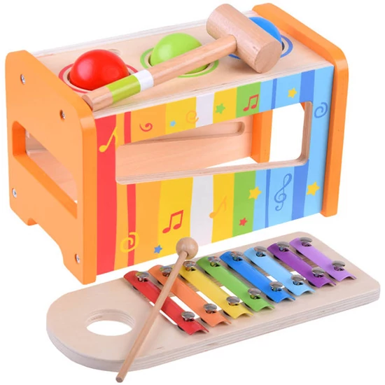 A fa, színes 2 az 1-ben cintányérok + színes golyók szett minden gyermek számára rengeteg kreatív, zenei kalandot és szórakozást nyújt. A készlet egy színes zenélő dobozban van lezárva. Szórakoztató ötletek: - klasszikus cintányérok 8 fémlappal, amelyek lehetővé teszik a teljes hangterjedelmet; csak finoman koppintsd meg az ütőt a finom hangzásért, egy erősebb ütés erőteljesebb hangzást biztosít. Egy egyszerű hangszer rengeteg szórakozást biztosít. - a cintányérok ütése a golyókkal - a gyermek a doboz nyílásán keresztül benyomhatja a golyókat, amelyek a cintányérokra esnek, és így hangot adnak ki belőlük. A játékkal játszva a gyermek megismeri: - hangok - kalapáccsal ütögetve a cintányérokat - színek - a hangszer színes lemezei - formák - kerek, színes golyók - számolás - a cintányérokon lévő golyók, plakettek száma A játék serkenti a kreativitást, a kreatív gondolkodást, és arra ösztönöz, hogy megismerjük a játék hatásait. A színes hangszer nagyon esztétikus és vonzó kidolgozású, így minden kicsi számára lehetővé teszi, hogy zenei kalandban legyen része a hangokkal. A készlet tartalma: - cintányérok - kalapács - 3 golyó - eset Játék mérete: - cintányérok 28 cm x 11 cm - 24 cm x 12,5 cm x 15 cm-es doboz - golyó átmérője 4,5 cm - egy 20 cm-es bot - kalapács 17 x 6 cm Zenélj otthon a gyermekeddel! Tanulás és szórakozás egyben. A készlet esztétikus, színes csomagolásban kapható. Tökéletes ajándék!