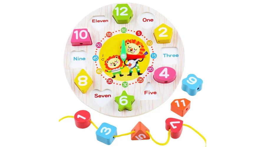 Az óra kerek számlappal rendelkezik, barátságos állatrajzzal. Két színes mutató és a számlapon bejelölt percek találhatók. Az órák számjegyei színes figurákon helyezkednek el, így a gyermek az idő tanulásakor a figurák formájához és a színekhez is hozzászokik. A több elemből álló játék lehetővé teszi a tanulást és a szórakozást. Óra attrakciók: - kerek fa pajzs kellemes színben - számok színes figurákban - percek - angolul írt számjegynevek - a figurák menetes lyukakkal rendelkeznek