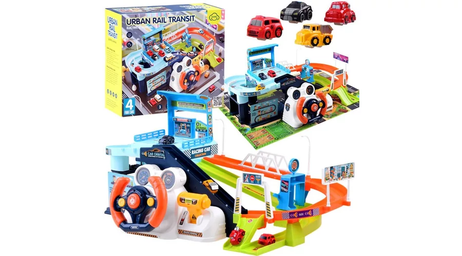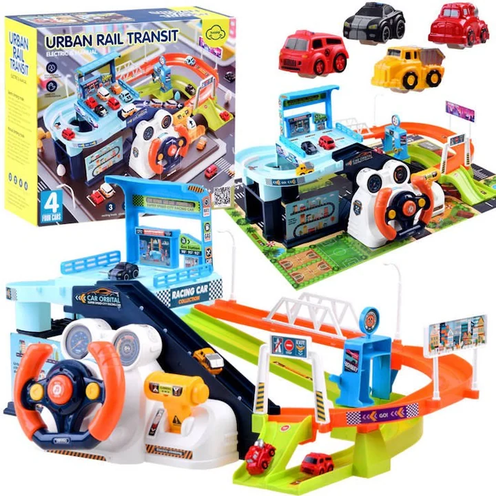 Az emelővel és kormánykerékkel ellátott pálya fantasztikus választás minden játékautó-kedvelő számára. A felső részen van egy parkoló hat parkolóhellyel.