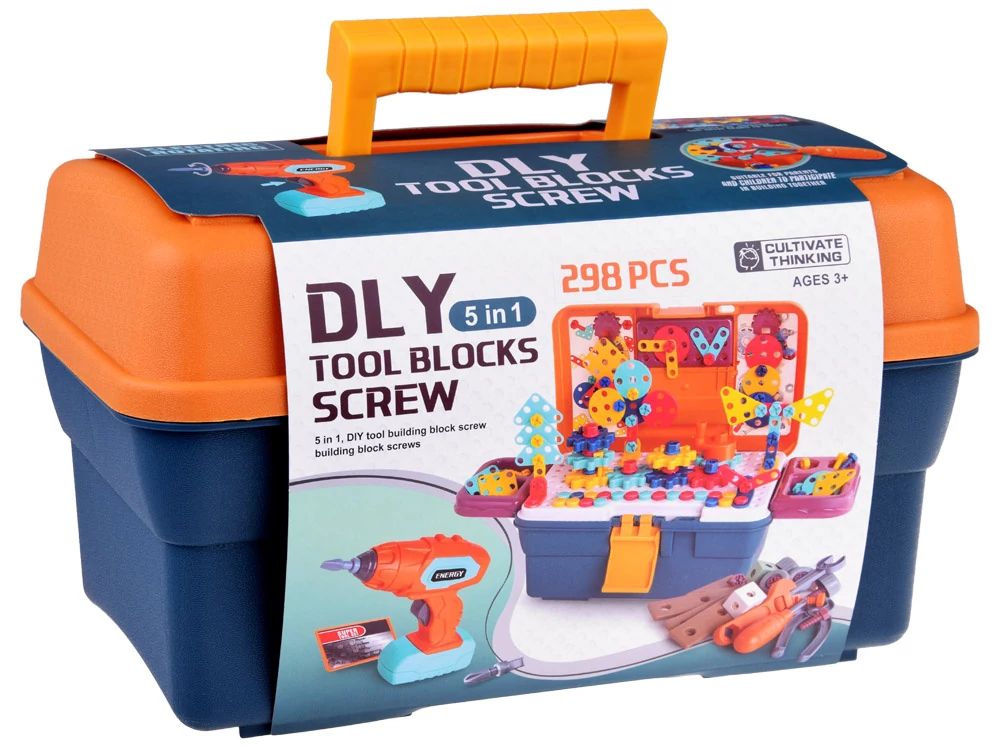 Egy jól felszerelt készlet egy fiatal barkácsrajongó számára egy doboz szerszámokkal, csavarokkal, anyákkal és csavarozási kellékekkel. Az összeszereléssel, javítással és új 3D-s szerkezetek létrehozásával való játék rengeteg kreatív szórakozást nyújt a fiatal kézművesnek. A dobozban található egy munkalap, polcok a tartozékoknak és mindennek, amire a műhelyben szükség lehet. A színes fogaskerekek és csavarok egyszerűen felcsavarozhatók a lyukas táblára, és máris egy mozgatható szerkezet jön létre. A játék lehetővé teszi különféle szerkezetek és minták építését, pl. autó, helikopter, állat stb. A készlethez egy ötleteket tartalmazó füzet is tartozik.