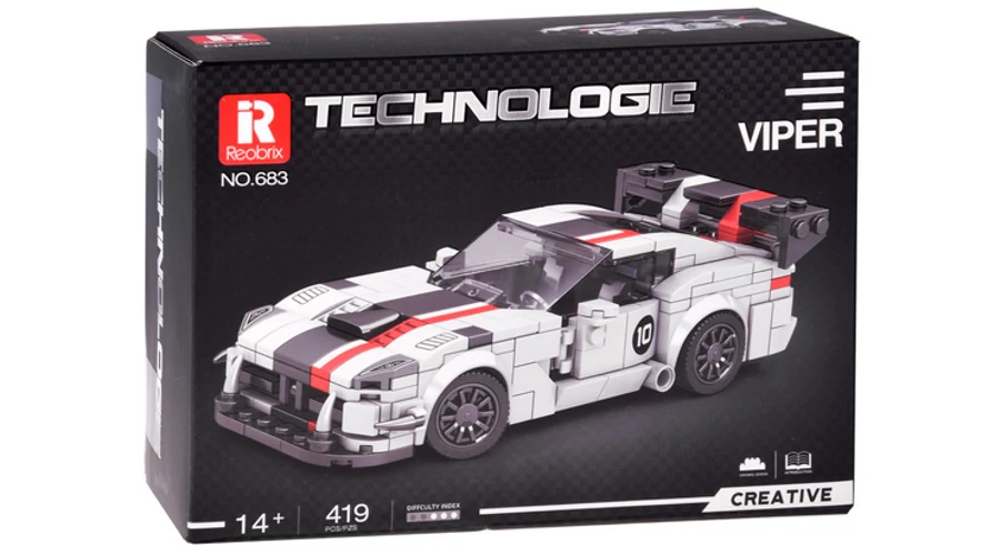 Modell: Klasszikus amerikai ikon ihlette modern szupersportautó Szín: Fehér Részletek: Fekete-piros versenycsík fut az autó teljes hosszában, a motorháztetőtől a spoilerig Darabszám: 419 Kor: 14+ Design: Izmos test, hosszú orr, aerodinamikus vonalak Matricák: Tartalmazza a további versenyzési részletek hozzáadásához Nehézségi szint: Középhaladó – tökéletes a műszaki építőkockák és az autóipari formatervezés rajongóinak Végső hatás: Egy dinamikus sportautó modell, amely ideális kiállítási darabként vagy gyűjtemény részeként