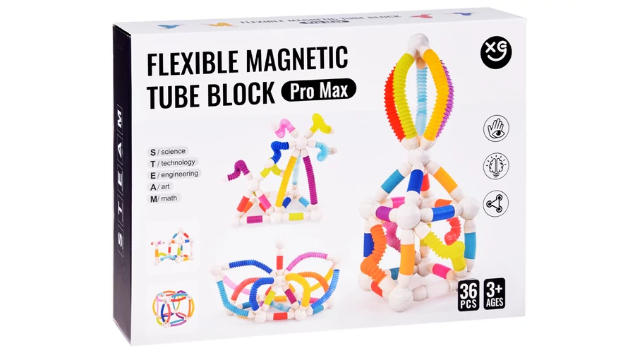 Rugalmasságot és mágnesességet ötvöz: A készlet 36 színes, hajlítható csőből és mágneses gömbből áll, amelyek lehetővé teszik stabil és dinamikus szerkezetek létrehozását. A gyerekek könnyen össze- és szétszerelhetik a darabokat, bármit megépíthetnek, amit a képzeletük el tud képzelni.