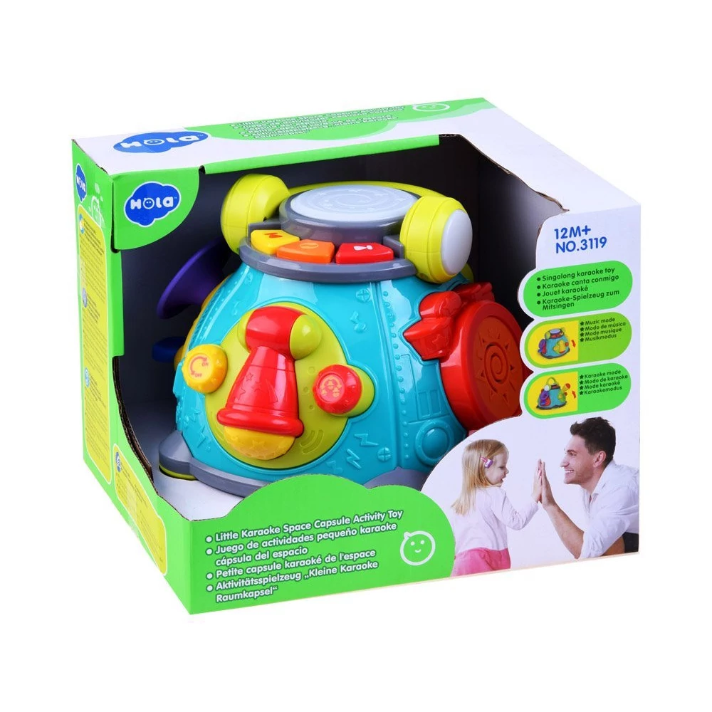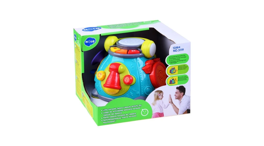 Az interaktív karaoke olyan játék, amelyet a zenét szerető és énekelni vágyó gyerekeknek terveztek. Ez a rendkívül sok funkcióval rendelkező zenés játék a legfiatalabb gyermekek számára készült. Minden fal egyedi tervezésű zenei játszótér a kis felfedezők számára. A játék egyes oldalain különböző hangszerek és funkciók találhatóak. A játék tetején egy zenével, lámpákkal és fülhallgató alakú fogantyúval kiegészített dob került kialakításra. A játék külön hangerőszabályzóval rendelkezik. A megszólaló hangelemeket színes villogó fények kísérik. A játék 4db AA elemmel működik, melyeket a csomagolás nem tartalmazza.