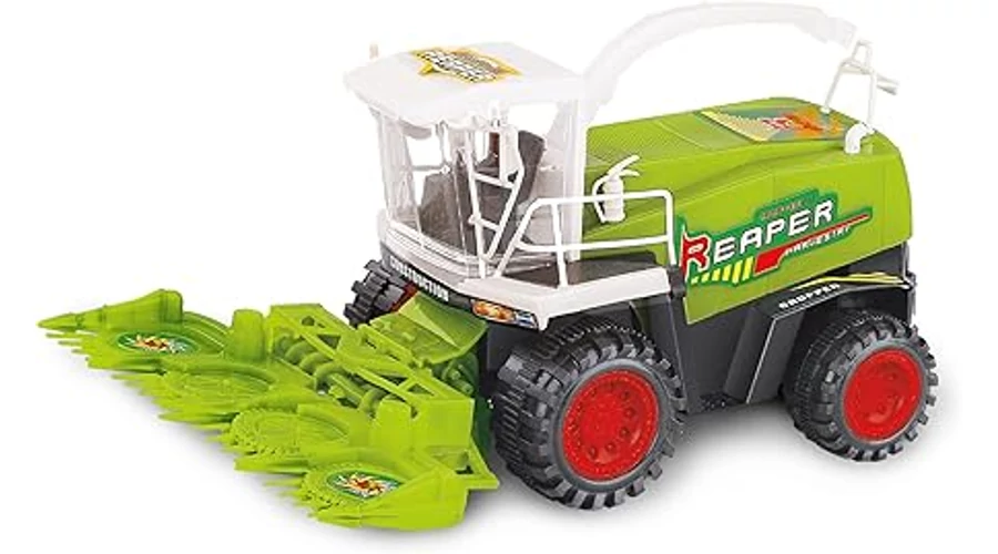 Ez a kombájn egy világoszöld-fehér színű mezőgazdasági gép lendkerekes hajtással, amivel le tudod aratni a gabonát. Miután kiértél az adott helyszínre, szereld össze és máris kezdődhet az aratás.
