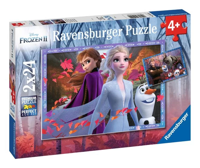 A Jégvarázs népszerű szereplőit rakhatod ki ezzel a 2x24-es Ravensburger kirakóval.