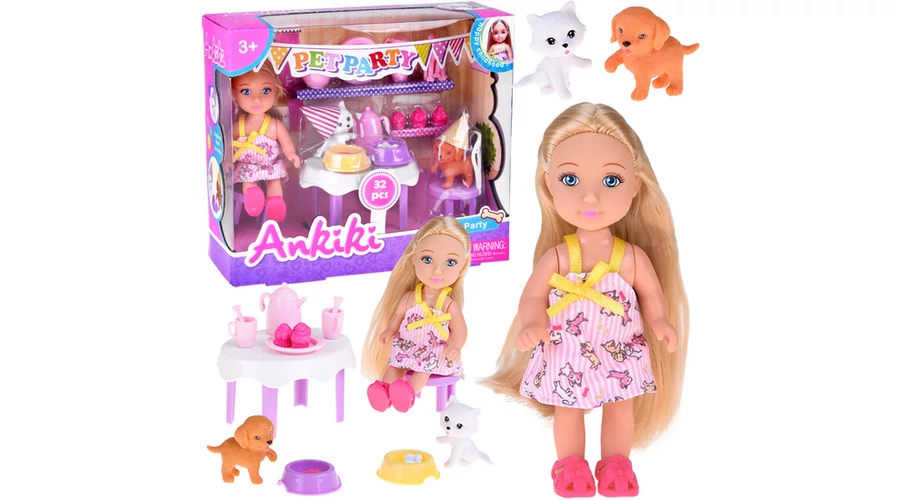 Az Ankiki – Állatbuli készlet igazi képzelőerő-lazulás és csodálatos ötlet a vidám játékhoz minden kislány számára. A dobozban egy imádnivaló baba található nyári ruhában és rózsaszín cipőben, aki készen áll arra, hogy bulit rendezzen szeretett háziállatainak! Két aranyos állatbarát – egy fehér kiscica és egy barna kiskutya – csatlakozik hozzá –, akik mindketten mókára, jutalomfalatokra és rengeteg szeretetre várnak.