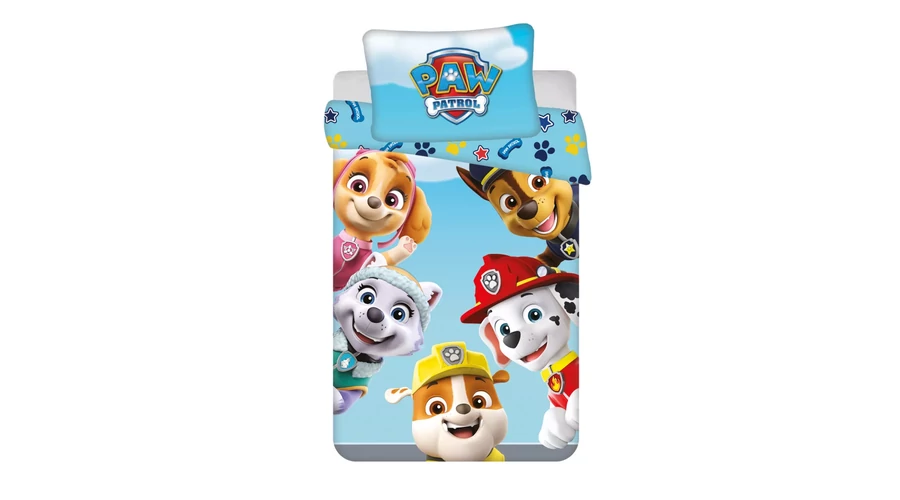 Minden Paw Patrol rajongó gyermek kedvence ágyneműje lesz ez a ovis ágyneműhuzat szett rajta a Mancs Őrjárat legendás kutyusaival: Skye, Everest, Rubble, Marshall és Chase.