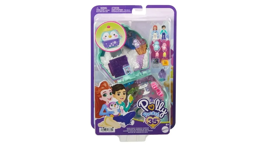 Milyen aranyos! Ez a Polly Pocket Hó Édes Pingvin kompakt játék pont úgy néz ki, mint egy fagylalt formájú pingvin, mókás, mozgó kezekkel! Nyisd ki, és máris feltárul előtted egy csodás téli mesevilág, ahol két mikrobaba és rengeteg meglepetés vár!
