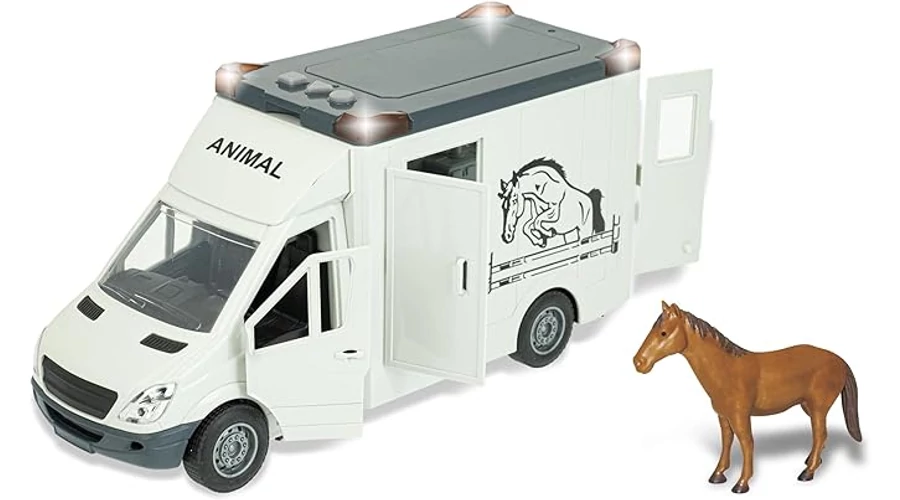 LÓ TARTALMAZVA ÉS UTAZÁSRA KÉSZ: Nem csak egy teherautó, hanem egy komplett játékkészlet! A csomag tartalmaz egy valósághű játéklovat, amelyet hátulról be lehet rakni a teherautóba, és el lehet szállítani a következő versenyre vagy egy új istállóba.
