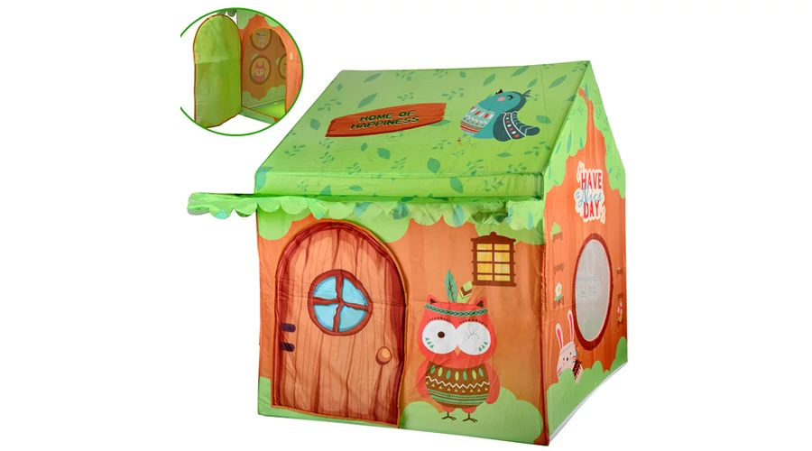A sátor praktikus ajtókkal és ablakokkal rendelkezik, amelyek könnyű hozzáférést biztosítanak, és ösztönzik a játékos játékot. Az egész szerkezetet bájos erdei állatfigurák, például egy bagoly és egy madár díszíti, meseszerű, barátságos légkört teremtve.