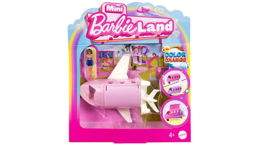 Tartalmaz egy 3,5 cm-es mini Barbie babát is , derékcsuklóval , így a pilótaülésben vagy az utastérben is ülhet , és izgalmas utazásokra indulhat a Mini BarbieLandben.