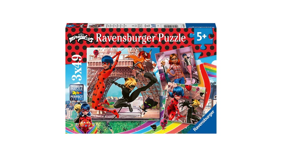 A Miraculous népszerű szereplőit rakhatod ki ezzel a 3x49-es Ravensburger kirakóval.