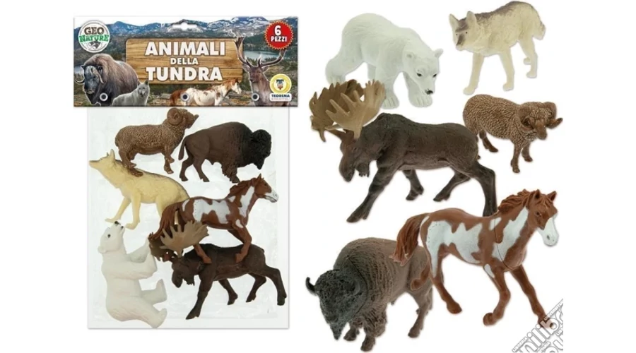 Ez a 6 darabos játékfigura szett a hideg, zord tundra vidékének ikonikus állatait mutatja be.