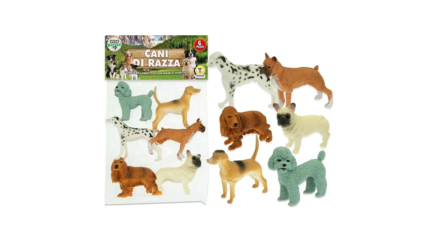 Fedezd fel a kutyák világát ezzel a részletgazdag, 6 darabos fajtatiszta játékkutya szettel!