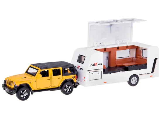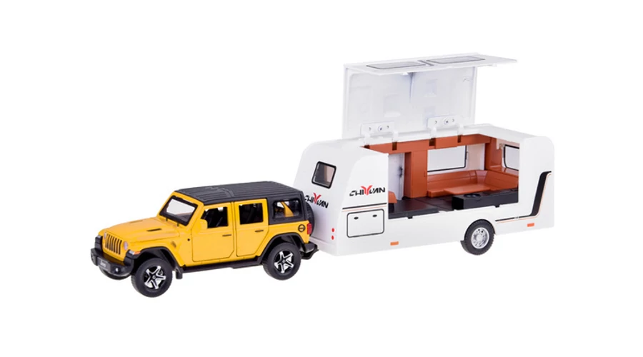 Terepjáró + kempingutánfutó a tökéletes játék, amely elrepíti gyermekedet a nyaralási kalandok világába! A fém terepjárót rendkívüli odafigyeléssel készítették a részletekre, a menet közben világító fényszórók pedig realisztikus megjelenést kölcsönöznek neki. Az 1:32 méretarányú modell tökéletesen reprodukálja a népszerű SUV-ot, ötvözve a tartósságot és a kiváló minőségű műanyagot.
