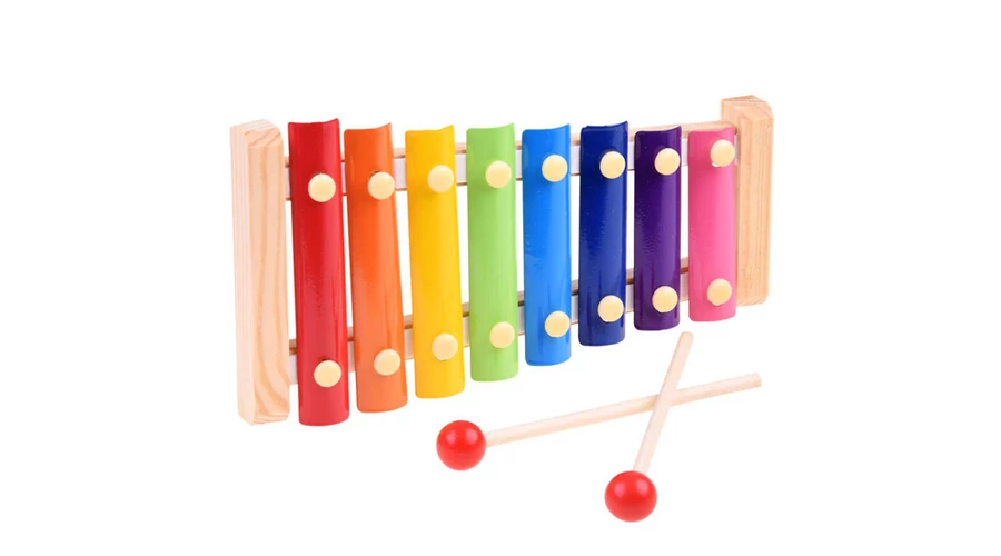 A színes cintányérok az első játékhangszer ötletei egy kis zenész számára.